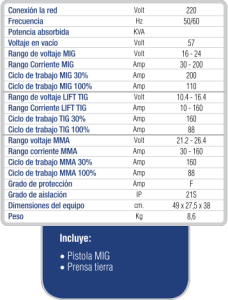 Control sinérgico de fácil uso alambre solido y tubular sin gas.